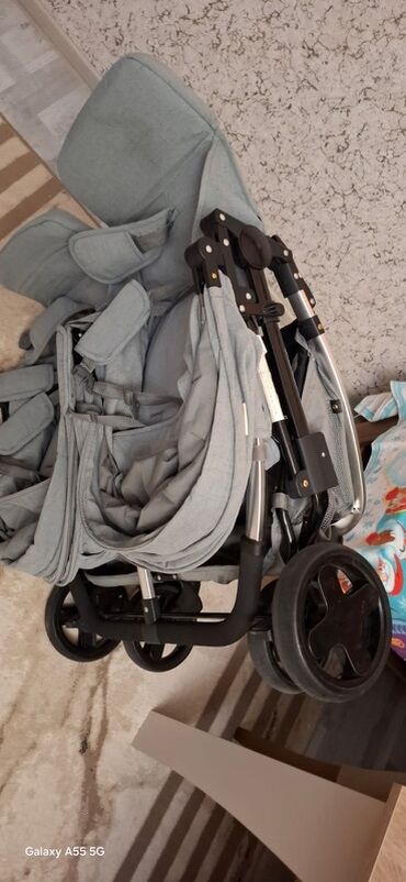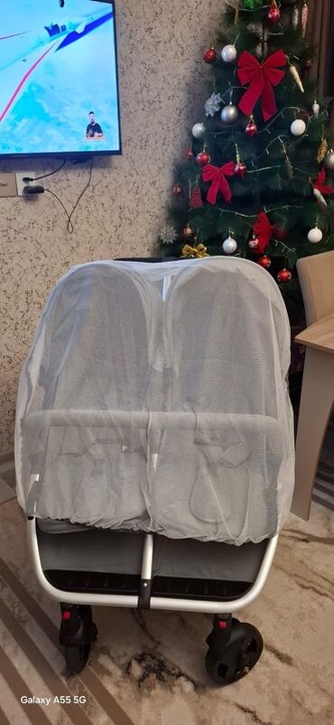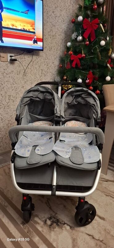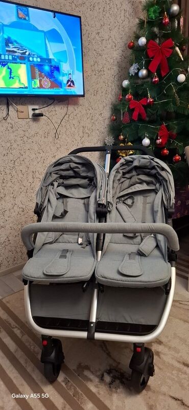 Əkizlər üçün yan-yana uşaq arabası . Sürülməyib. Baha alınıb . Uşaqlar oturmadı , məcbur satışa qoyduq .