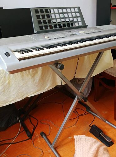 Sintezator elektropiano YAMAHA teze modellerdendi 7 oktavadir teze kimidir islenmeyib qeseng ritm ve sesleri var ayaqliqi ve chexoluda var