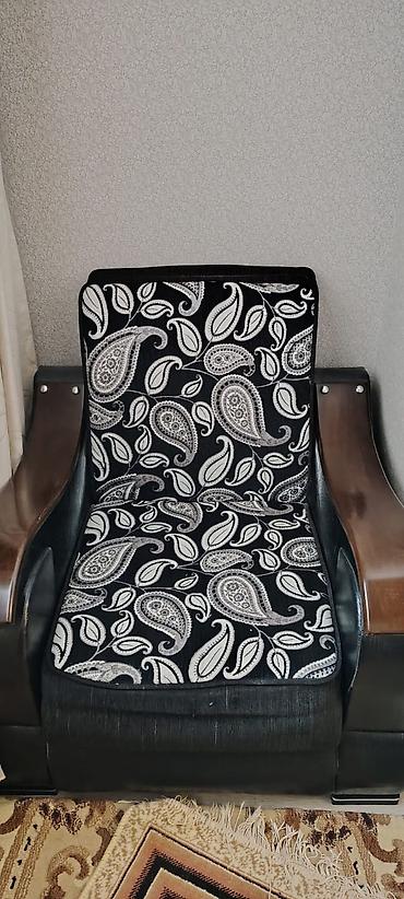 - Oturacaq və arxa hissə: Qara fonda ağ-boz buta və yarpaq naxışlı yumşaq parça
