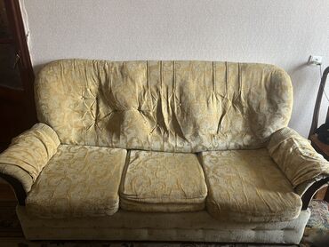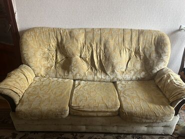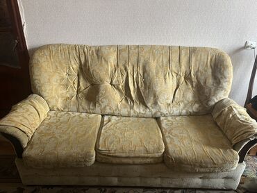 - Rəng və material: Açıq bej tonlarında, naxışlı parça üzlük, dekorativ düyməli arxa dayaq.