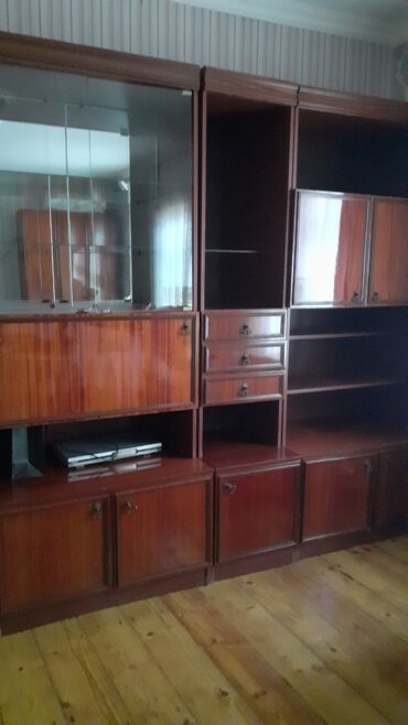 - 1 ədəd salon üçün modul “stenka”: müxtəlif ölçülü açıq rəflər, şüşə vitrini olan bölmə (stəkan, suvenir və s. üçün), üç ədəd çekmece, aşağıda bir neçə qapılı dolab hissələri. TV/DVD üçün açıq niş, kabel çıxışı üçün arxa hissədə boşluq. Modul quruluş sayəsində kitab, qab-qacaq, dekor və multimedia yerləşdirmək rahatdır.