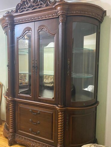 Salam Aleykum ideal vəziyyətdədi təcili evdən çıxmalıdır. Qiymeti endirdim Klassik üslubda iri vitrin-bufet - Material: təbii ağac teksturası ilə bəzədilmiş massiv korpus, zəngin oyma dekor və rel...