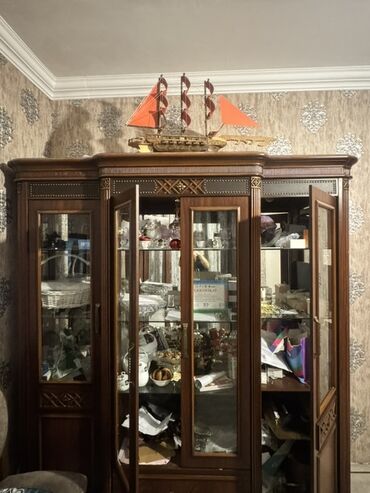 Şüşəli vitrinlər ekspozisiya məqsədli, alt bölmə isə saxlama üçün rahatdır. Klassik interyerlərlə harmoniyalı görünüş yaradır.