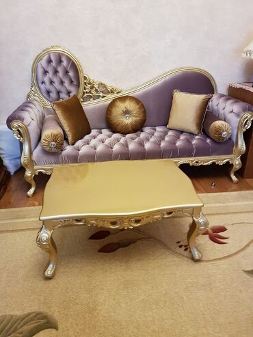- Jurnal masası: Qızılı rəngdə, oyma ətəklik və kabriol ayaqlar, hamar üst səth