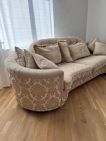 - Material: Qalın, naxışlı jakard parça və yumşaq məxmər teksturalı yastıq üzləri