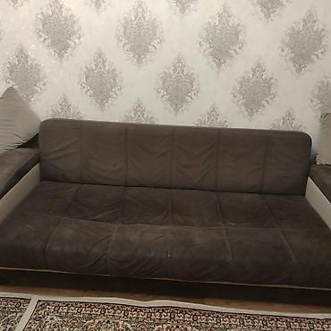Qonaq otağı dəsti – divan və iki kreslo - Komplekt: 1 ədəd üç nəfərlik divan + 2 ədəd geniş kreslo - Üzlük: parça kombinasiyası (tünd qəhvəyi və krem rənglər), dekorativ qırmızı-qəhvəyi elementlər...