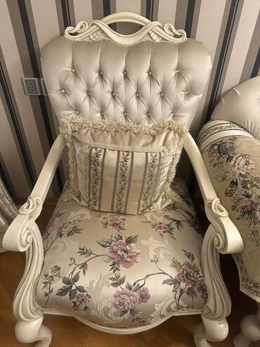 - Dizayn: Barokko elementləri ilə klassik görünüş, qabarma kapitone arxa hissə, dekorativ ağ rəngli taxta oymalar, qıvrım formalı ayaqlar.