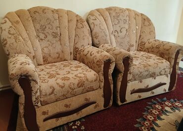 - 2 ədəd kreslo: divanla eyni üslub və parça, yumşaq oturacaq və bel hissəsi, yanlarda taxta dekor elementləri, aşağı hissədə əlavə yataq bölməsi.