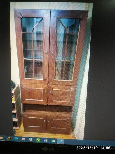 - Üst hissə: 2 şüşəli açılan qapı – qab, suvenir, kitab və s. üçün görünən vitrin bölməsi