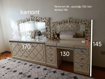 - Termo/krassofka (güzgülü konsol): iki bölməli komod + iş masasını birləşdirən modul. Üst hissədə iri güzgü, oyma çərçivə.