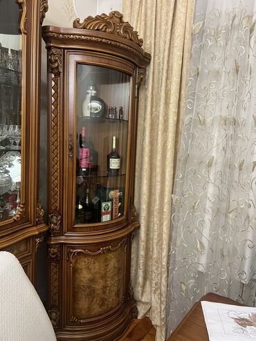 Klassik üslubda bəzədilmiş guşə vitrin şkaf