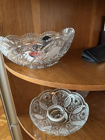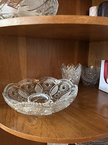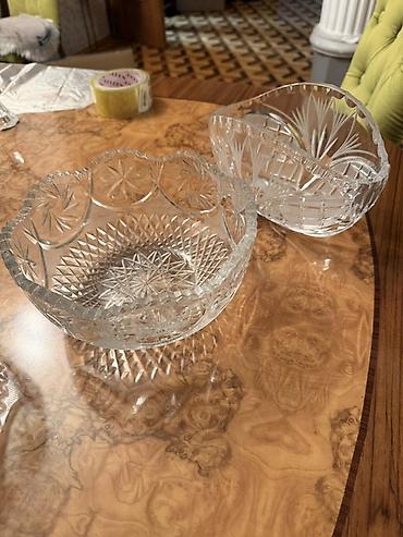 Kənaqlı kəsimli kristal servis dəsti 1 eded xrystal qab 35 azn dir 1