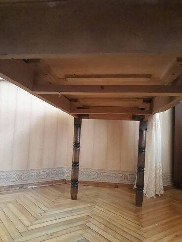 Masa eni 62 sm,uzunlugu 116 sm,yerdən hündürlüyü 80 sm.Masa yaxşı vəziyyətdədir heç bir qırıgı sınıgı laxlamagı yoxdur.Materialı meşə agacındandır tər-təmiz taxtadır üzərində ləkələri var və lak çə...
