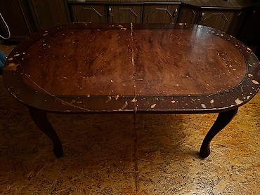 Qonaq otağı mebel dəsti Tərkibi: - Yemək masası: klassik üslub, parlaq taxta üstlük, yumşaq bucaqlar; ortadan artırıla bilən panel ilə genişlənən konstruksiya. - Stullar: taxta karkas, dekorativ a...