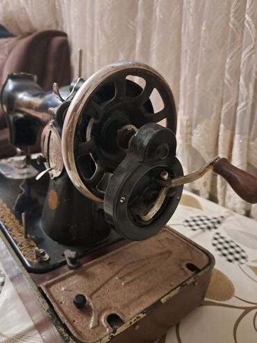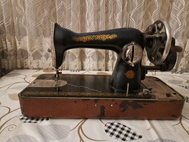 Qedimi tam iwlek .Klassik mexaniki tikiş maşını - Korpus: tökmə metal gövdə, laklı qara səth və qızılı ornament detalları - İdarəetmə: sağ tərəfdə əl çarxı və kəmər ötürücüsü ilə mexaniki işləmə -...