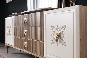 Zərif naxışlar, qızılı detallar və funksional saxlama ilə interyerə isti və möhtəşəm ab-hava qatır.