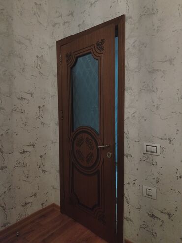 - Dizayn: klassik oyma ornamentlər, yuxarı hissədə yumşaq künclü panellər; bəzi qapılarda mətbəx/hamam üçün mat-şəffaf dekorativ şüşə (romb naxışlı)