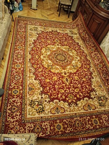 Qəşəng, isti tonlarda zəngin naxışlı xalça interyerə klassik zəriflik qatır. Foto 23.12.2025 tarixlidir. Redmi Note 14 ilə çəkilib.