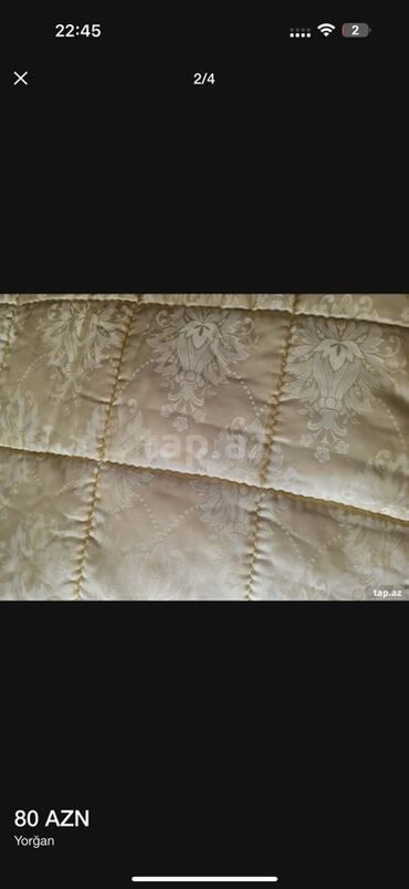 Şiq naxışlı yorğan - Rəng: açıq şaftalı/bej - Üzərində payet və muncuqlarla işlənmiş ürək və çiçək motivləri - Dekorativ tikmələr və dalğavari steplaşma xətləri - Alt hissəsində zərif krujeva/zərl...