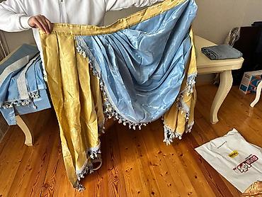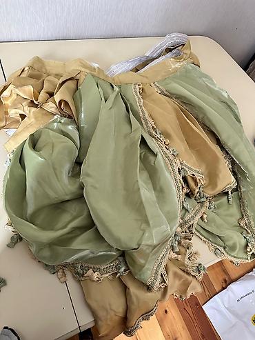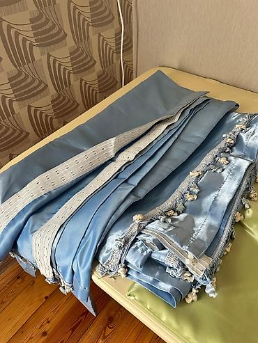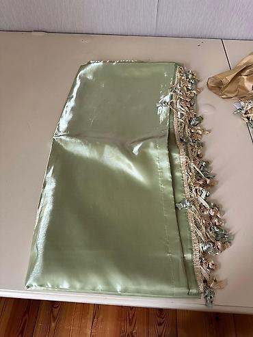 - Komplektdə həm əsas pərdələr, həm də eyni parçadan dekor üçün zolaqlar/qaşlar var