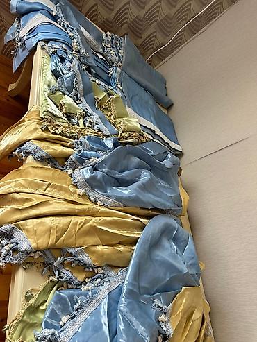 Pərdə dəsti – klassik dekorlu - Material: parlaq atlas tipli parça -