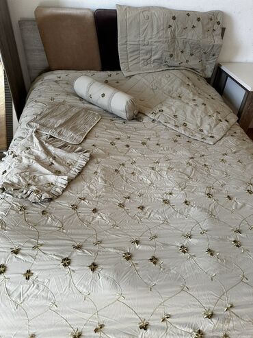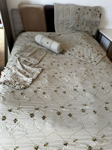 - Yataq örtüyü – üzərində zərif çiçək aplikasiyaları və dekorativ tikişlər