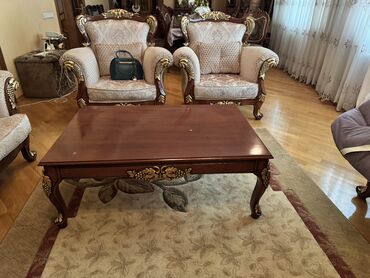 - Jurnal masası: Eyni ağac tonunda, oyma dekorlu ön-yan hissələr, əyri ayaqlar, geniş üst səth