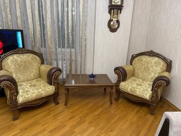 - Kreslolar dərin oturacaqlı, eyni dekorla uyğunlaşdırılıb