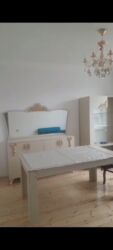 Mebel dəsti – qonaq otağı və mətbəx üçün - Oval formalı, genişləndirilə bilən yemək masası: mərkəzdə massiv taxta sütun ayaq, yumru künclər, iki parçalı üst səth. - 8 ədəd stul: taxta karkas, bel...