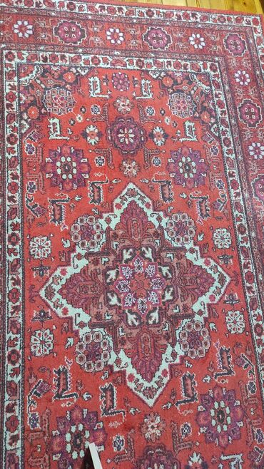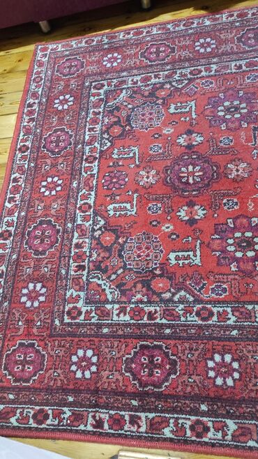 - Forma/ölçü təsviri: düzbucaqlı, orta–böyük ölçü kateqoriyası (otaq xalçası). Kənarları overlokludur.