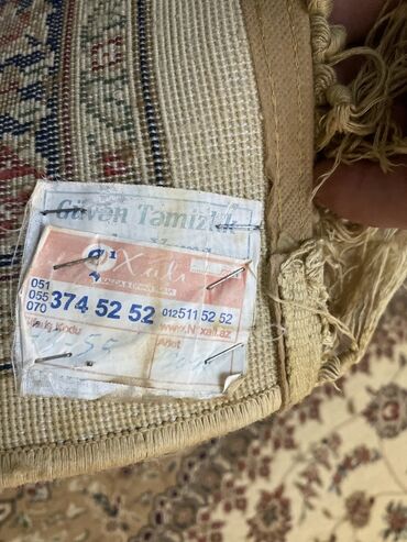 - Etiket: xalça yuyulması/temizliyi üçün “Güvən Təmizlik / Xalça Yuma” kağız etiketli nümunə mövcuddur (şəkildə görünür)