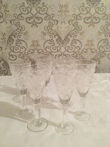 • 3 ədəd uzun ayaqlı qədəh – bədii ornamentli, üst hissədə 3 ədəd qızılı xətt, bükülü (spiral) formalı ayaq.