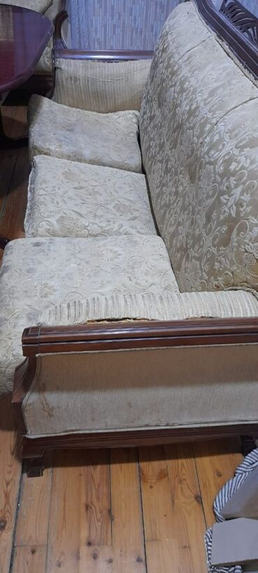 Klassik üslubda mebel dəsti – taxta karkaslı, dekorativ oyma detallı. Dəst aşağıdakılardan ibarətdir: