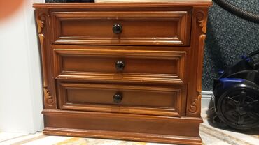 Rumıniya isdesali Klassik üslubda yataq otağı mebeli dəsti deməyə olar işlənmiyib Tərkib: - 2 ədəd tumbə: hər birində yuxarıda kiçik çekmece, aşağıda qapılı bölmə. Dəyirmi metal tutacaqlar, dekorat...