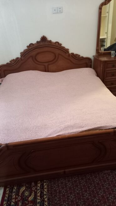 • Geniş iki nəfərlik taxta çarpayı (başlıq və ayaqlıqda dekorativ relyef oyma)
