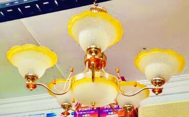 Materiallar: metal korpus (qızılı örtük), şüşə plafonlar, dekorativ kristal elementlər.