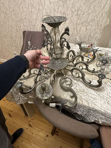 - Dekor: üzlü kristal elementlər (mərkəzi sütun və qollarda büllur hissələr)