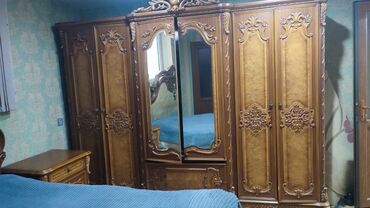 - 6 qapılı böyük qarderob (mərkəzdə tam boy güzgü, oyma ornamentlər, çoxsaylı rəf və asılqan bölmələri)