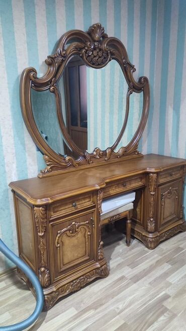- Vizaj/komod masası iri dekorativ güzgü ilə (bir neçə siyirmə, qapılı bölmələr, ortada oturacaq yeri)