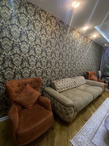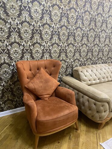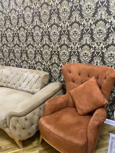 Klassik üslubda dəst: 6nəfərlik bej rəngli divan və 2 ədəd pasterngı narıncı (terra-kotta) rəngli kreslo.