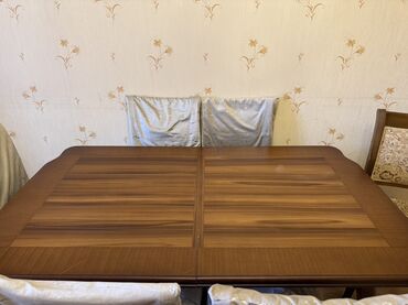 - Ölçü təxmini (şəkillərə əsasən): 6 nəfərlik rahat yerləşim. Masa səthinin ortasında birləşmə xətti var, əlavə lövhə ilə genişlənə bilən konstruksiyanı xatırladır.