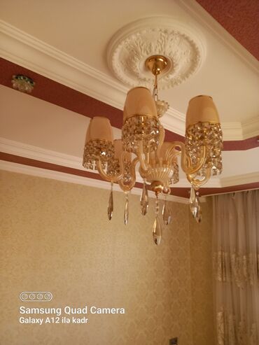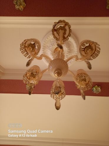 Klassik üslubda tavana quraşdırılan şüşə kristallı çilçıraq. 180 azn alinib. 70 azn satilir Xüsusiyyətlər: - 6 lampalı konstruksiya (E14 patronlu şam formalı lampalar) - Qızılı rəngdə metal gövdə ...