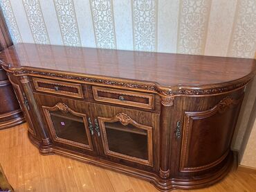 Yataq otağı dəsti – klassik və zərif dizayn Tərkibi: - Çarpayı (yumşaq başlıq, qızılı detallar) - 2 ədəd tumba - Güzgülü makiyaj/komod masası (çekmece və dolab bölməsi ilə) - 4 qapılı şkaf: orta h...