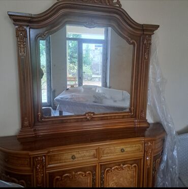 Klassik üslubda taxta bufet və iri güzgü dəsti - Material: bərk