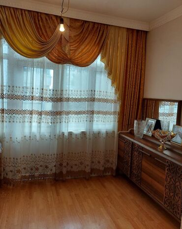 - Tərkib: 3 qat kompozisiya – 8ağır dekorativ üst pərdə (şal formalı lambreken), iki tərəfli qalın fon pərdəsi və naxışlı tül.