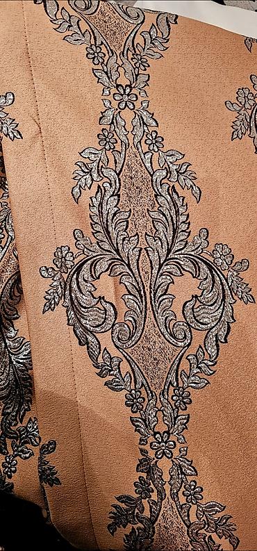 2 Ədəddi.. Zərif naxışlı, parıltılı teksturası olan pərdə dəsti. - Material: atlas effektli, qalın parça (şux, işıqda parlaq görünüş). - Rəng: pudra-qəhvəyi tonlarda, klassik barokko üslubunda gül...
