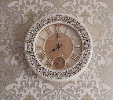Zərif naxışları və qızılı tonları sayəsində interyerə eleqantlıq qatır, uzaq məsafədən oxunan iri Roma rəqəmləri ilə funksionaldır.