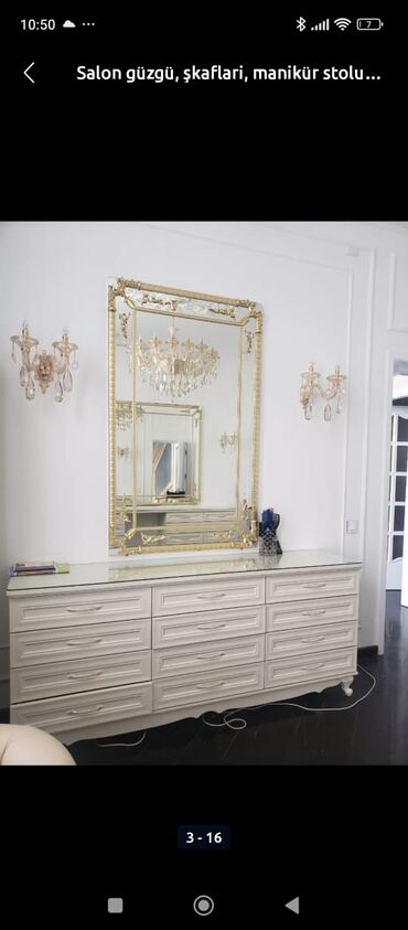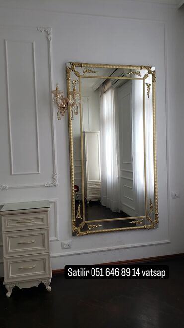 - Yan divar üçün ayrıca iri vertikal güzgü (qızılı çərçivəli).
