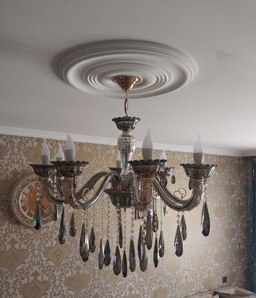 - Asqılar: tünd tüstü rəngli kristal/prizmalar və şəffaf zəncirli bəzəklər