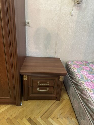 - Tumba: 2 siyirməli komod/yataq yanı tumbası, dəstlə eyni üslubda dekorativ tutacaqlar və künc işləmələri ilə.